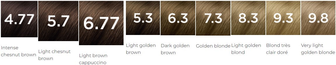 To choose the desired color, you must take into account the numbering included in the packages, and the first digit corresponds to the base color, the lowest being the darkest and the highest the lighter. In the case of Phyto color, 1 is Black and 10 is extremely light blonde. If it has a second digit, it represents the primary reflexes; if it doesn't, the color has none. The third digit corresponds to the depth of the reflexes.