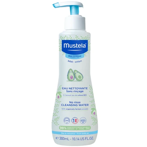 Acqua detergente a risciacquo, con una base detergente ultra delicata senza sapone, per pulire delicatamente la pelle del bambino.
