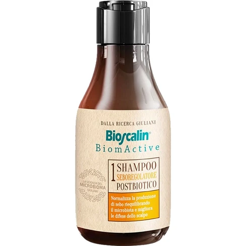 Biomactive post-biotic shampoo seborregulator rebalances the microbiome of the scalp.