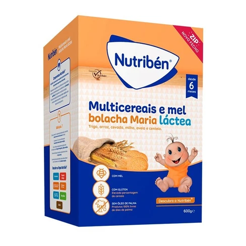 Why Choose Nutribén Multicereals? Backed by 50 years of expertise, this creamy cereal with honey and Maria biscuits ensures optimal nutrition and flavor for your baby’s daily diet. It’s the trusted, delicious choice for growing needs!
