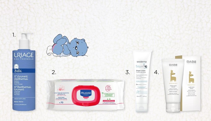 Simple erythema can be treated by reinforcing the above mentioned hygiene measures, increasing the frequency of diaper changes and, specially, leaving the baby without a diaper whenever possible, because contact with air turns easier the treatment of erythema. You can apply (1.) Uriage Baby 1ère eau thermale 1 st thermal water for baby that will help to appease and soothe the area.